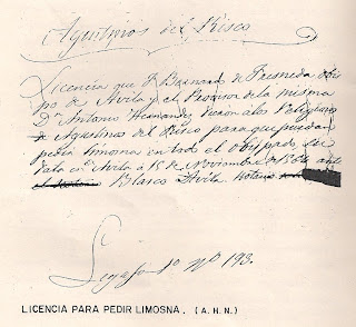 El 15 de Noviembre de 1564, los religiosos agustinos del Risco reciben la licencia para poder pedir lismona en todo el obispado.